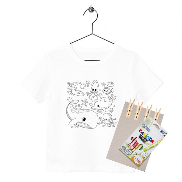 • T-shirt à colorier en coton bio (qualité premium) collection Fauna –  modèle océan